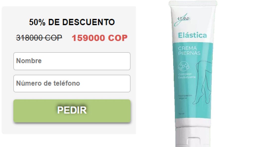 Elastica es un Crema totalmente natural que actúa las 24 horas del día para estabilizar los niveles de presión arterial en las extremidades inferiores. El fabricante afirma que el producto es el remedio perfecto para personas jóvenes y mayores que padecen varicosis . Normaliza la apariencia de la piel y normaliza suavemente el tamaño de las venas de las piernas. Ya se han vendido más de 1.500.000 ejemplares en Colombia . Esto se explica por el lucrativo precio en el sitio web oficial. Las opiniones y comentarios de Elastica en foros demuestran que la gente aboga por su uso. No hay quejas de efectos secundarios.